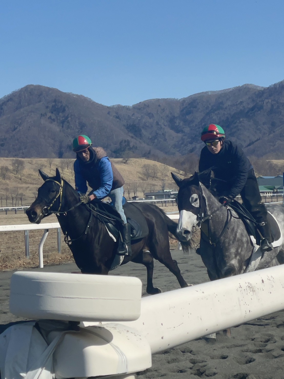 同期の研修生のお母さんがBTCに来られて、騎乗訓練を見学することになりました。同期を引き立たせるために、自分は注目されないように乗らないといけなかったのですが、馬がとても元気で最後尾の内側から外ラチまで飛んでいってしまい、800m走路を3周程したところでやっと止まることができたという恥ずかしい思い出があります。